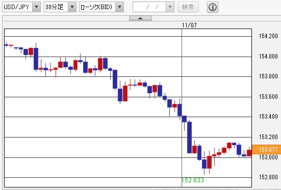 154円台の上値重く、米人員削減急増で152.833まで下落