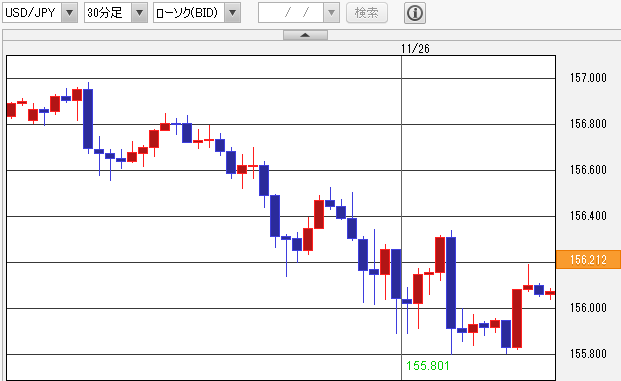 円安一服で売り優位 次期FRB議長人事の思惑で155.801まで下落